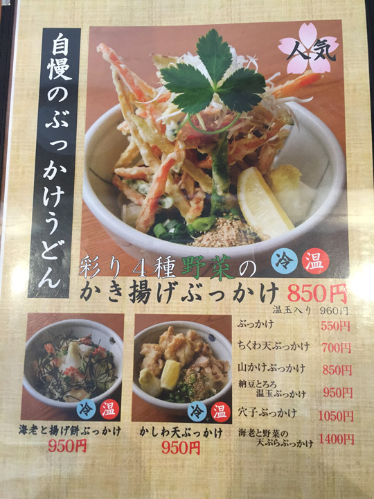今回はサクサク野菜かき揚げ冷やぶっかけを注文。