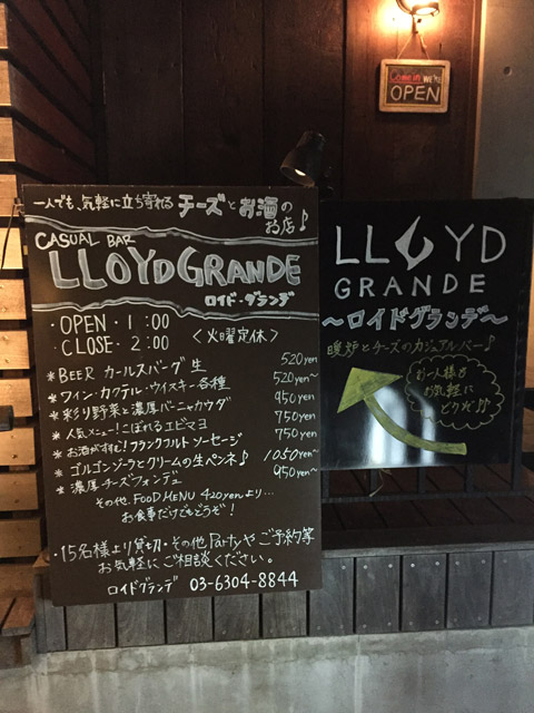 中野新橋駅から徒歩5分。チーズとお酒のお店ロイドグランデに行ってきました♪