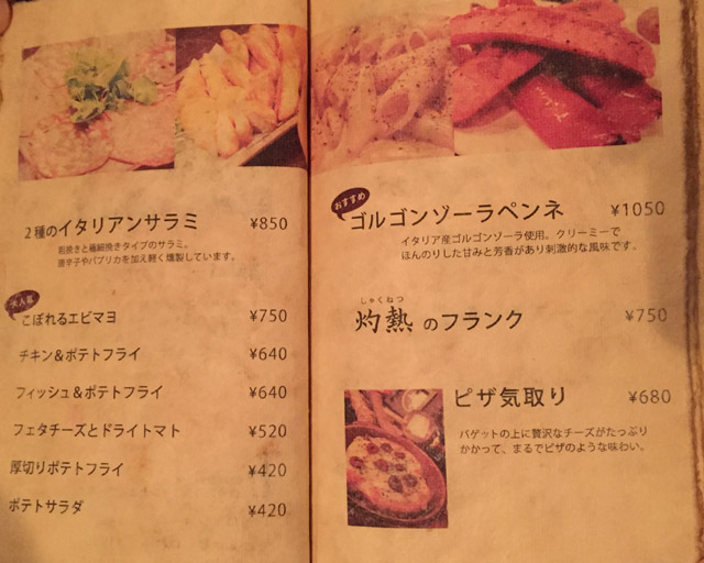 チーズ料理以外にも一品料理やお酒のおつまみなどがあります。