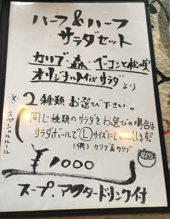 +300円でスープ、サラダ、パン、ドリンクのセットに出来る