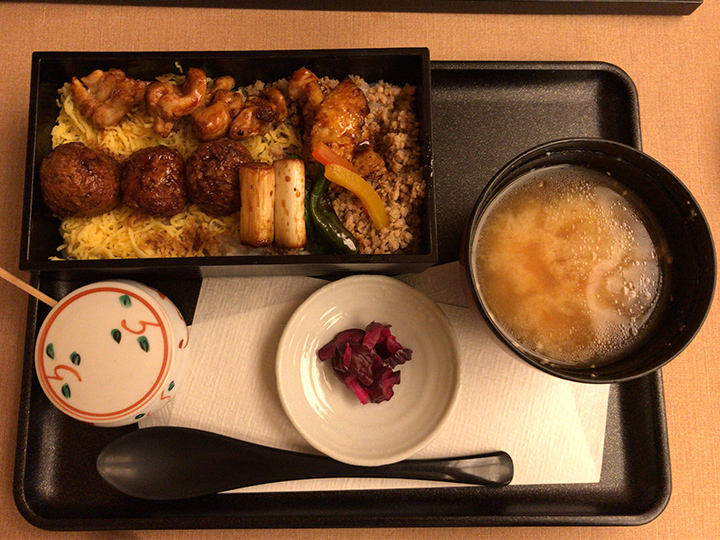 焼きとりの下にはそぼろご飯が。