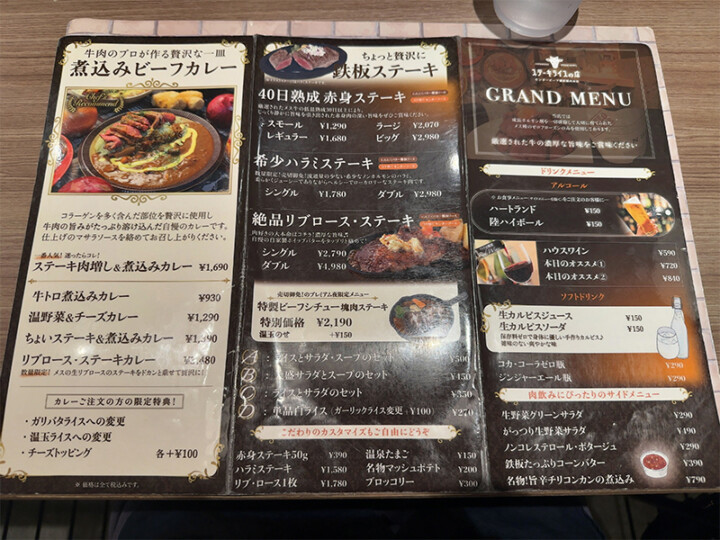 一番人気ということで、ステーキ肉増し&煮込みカレー1,690円を注文。