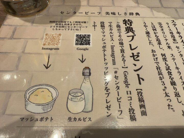 インスタやGoogleレビューに投稿すると、その場でもらえる特典もあります!